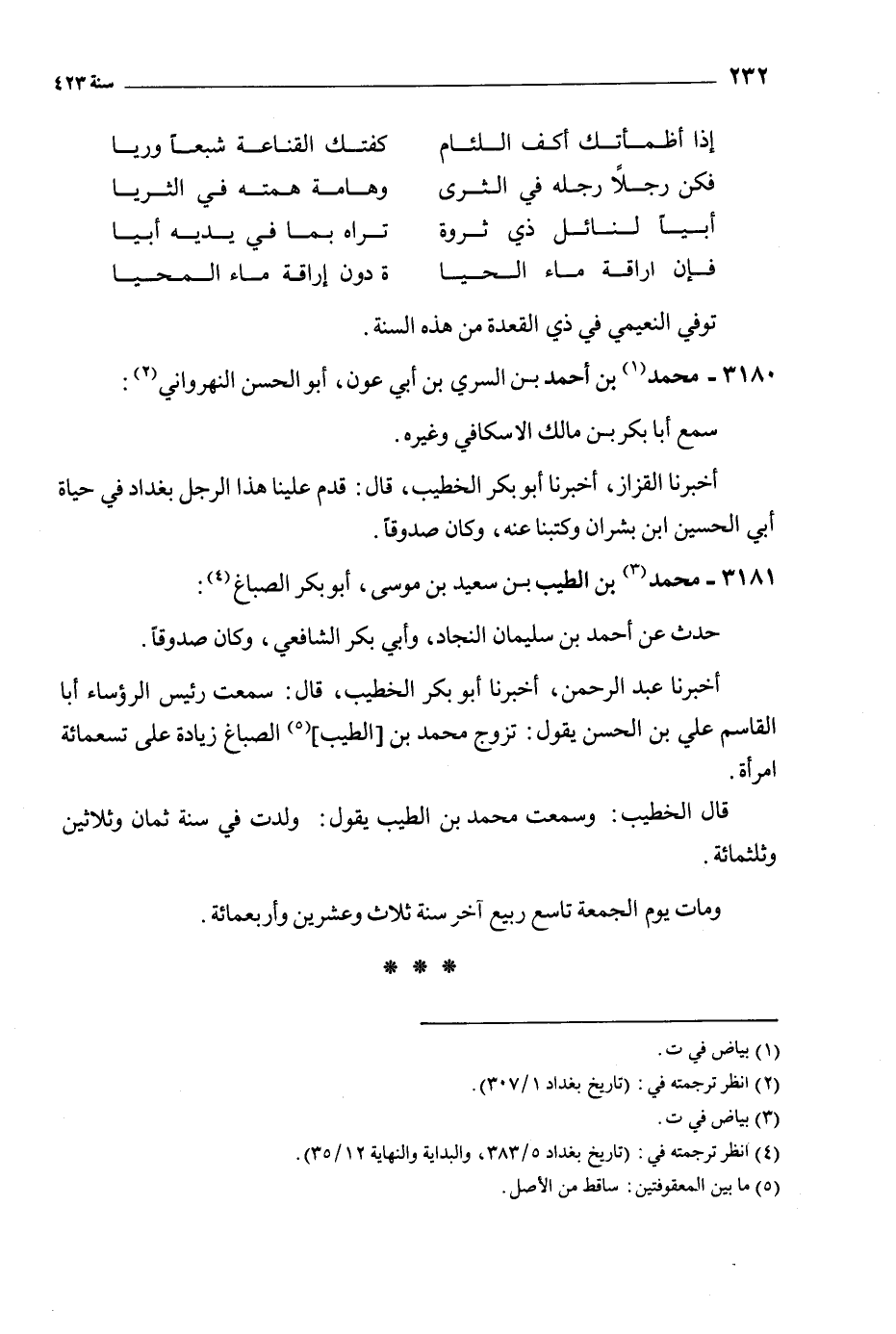 [4] انظر ترجمته في: (تاريخ بغداد 5/ 383، والبداية والنهاية 12/ 35) .