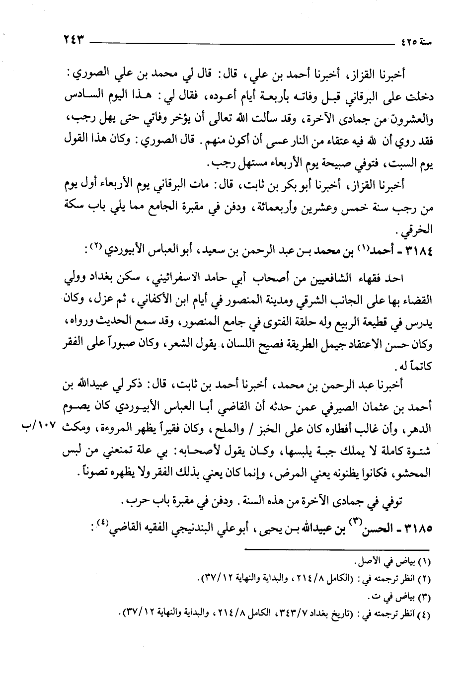 [4] انظر ترجمته في: (تاريخ بغداد 7/ 343، الكامل 8/ 214، والبداية والنهاية 12/ 37) .