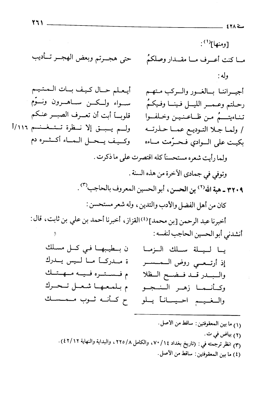 3209- هبة الله [2] بن الحسن، أبو الحسين المعروف بالحاجب