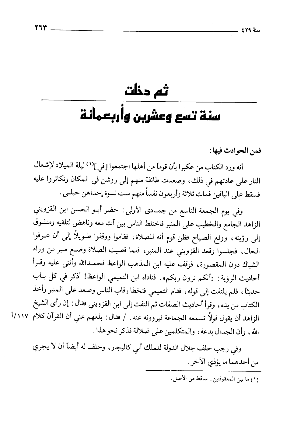 ثم دخلت سنة تسع وعشرين وأربعمائة