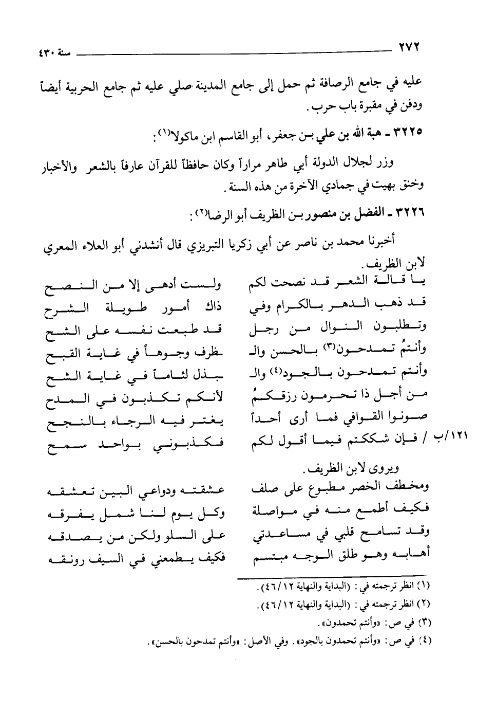 أخبرنا محمد بن ناصر عن أبي زكريا التبريزي قال أنشدني أبو العلاء المعري لابن الظريف.