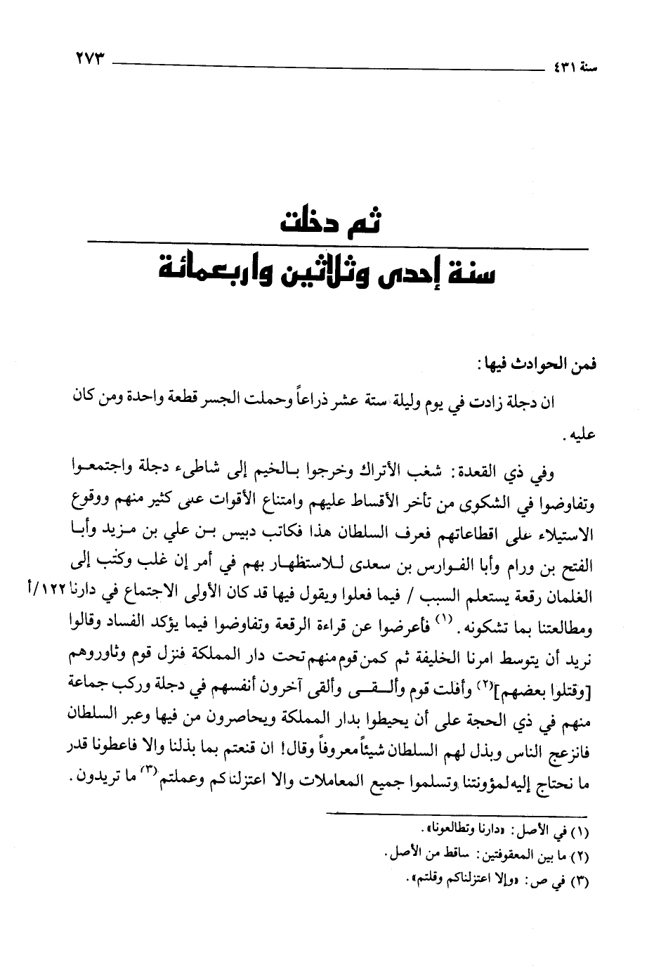 ثم دخلت سنة إحدى وثلاثين واربعمائة