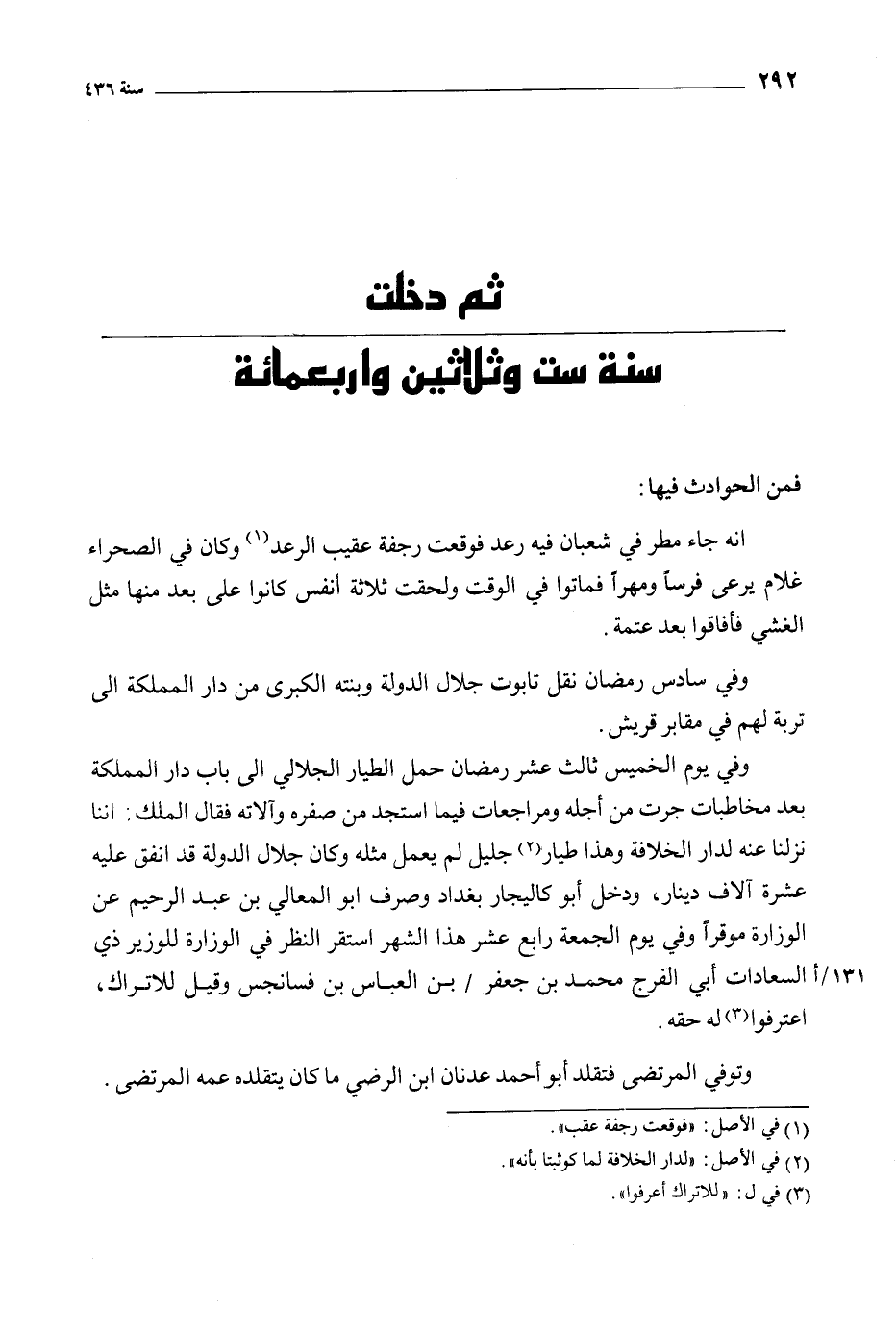 ثم دخلت سنة ست وثلاثين واربعمائة