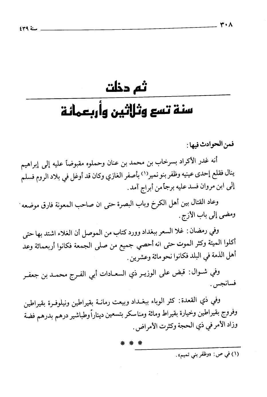 ثم دخلت سنة تسع وثلاثين وأربعمائة