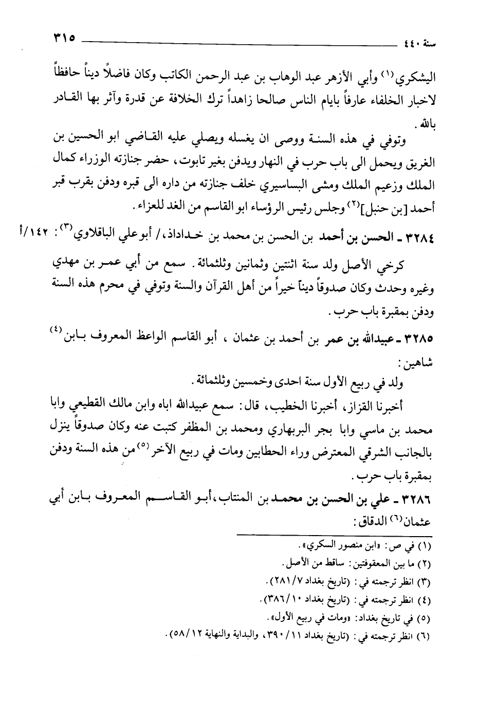 [6] انظر ترجمته في: (تاريخ بغداد 11/ 390، والبداية والنهاية 12/ 58) .