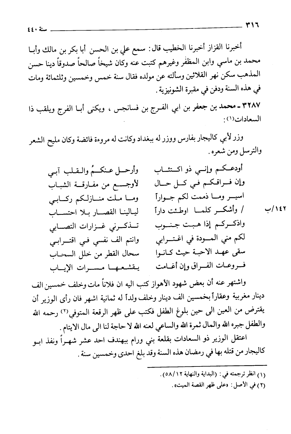 3287- محمد بن جعفر بن أبي الفرج بن فسانجس، ويكنى أبا الفرج ويلقب ذا السعادات