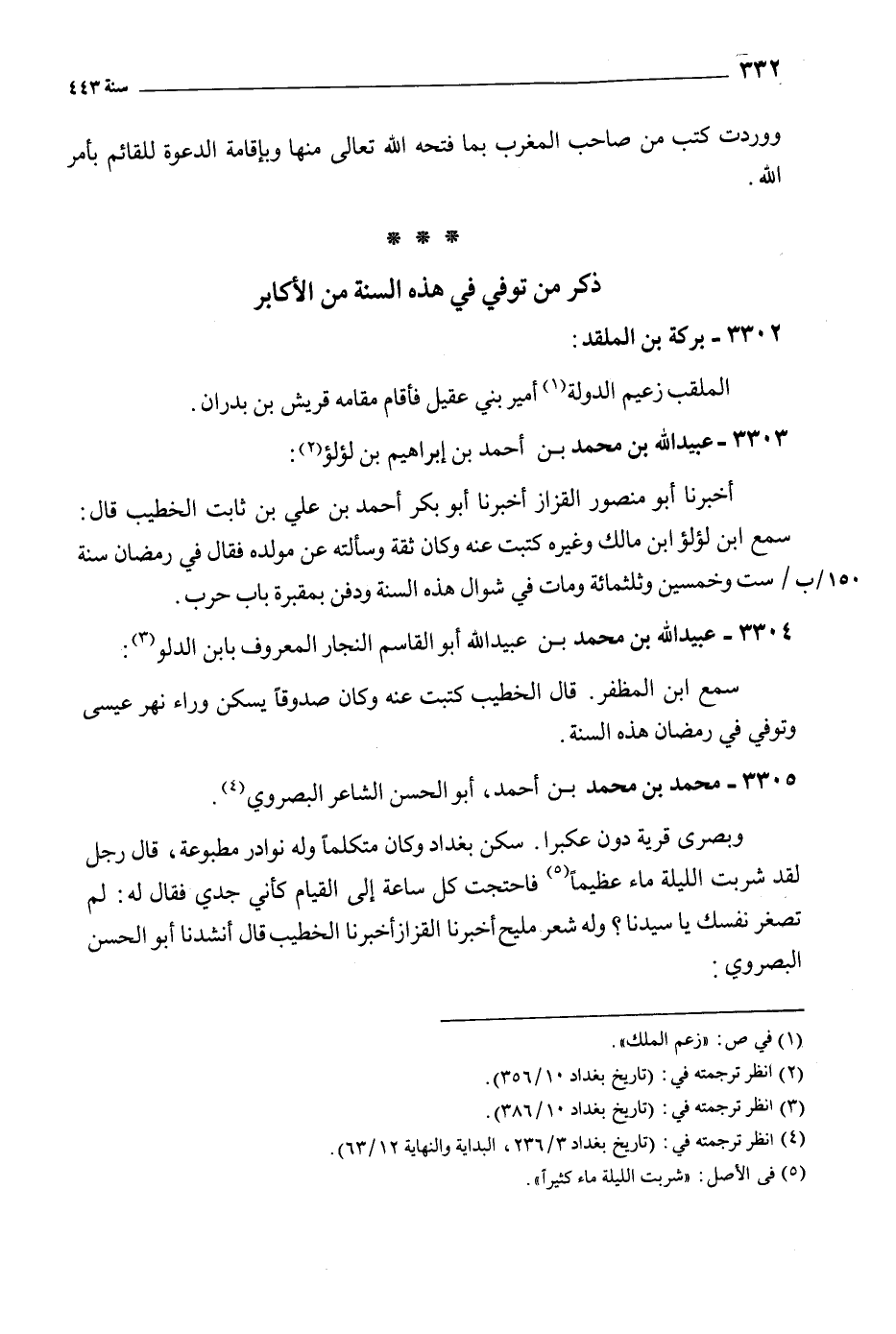 [4] انظر ترجمته في: (تاريخ بغداد 3/ 236، البداية والنهاية 12/ 63) .
