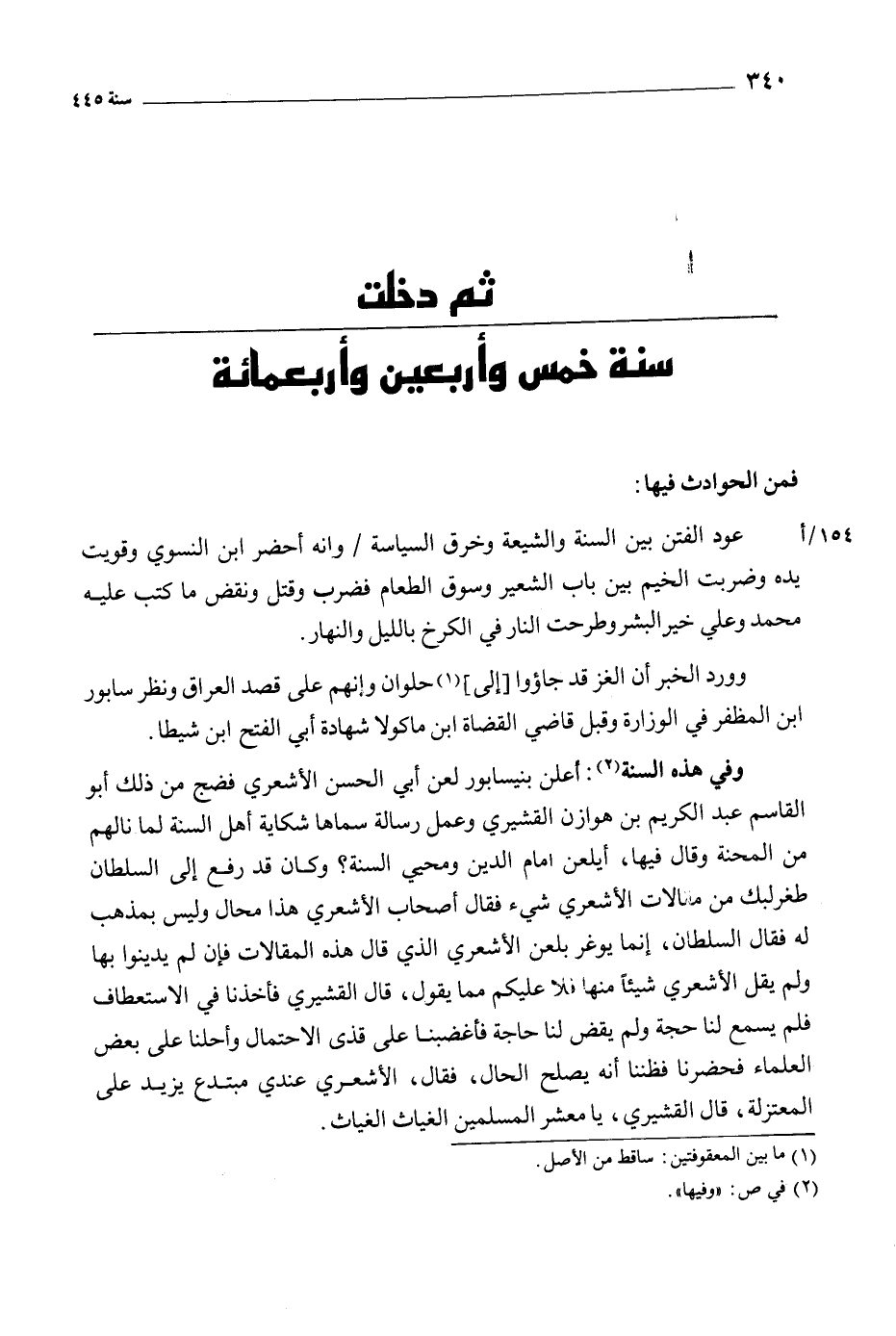 ثم دخلت سنة خمس وأربعين وأربعمائة
