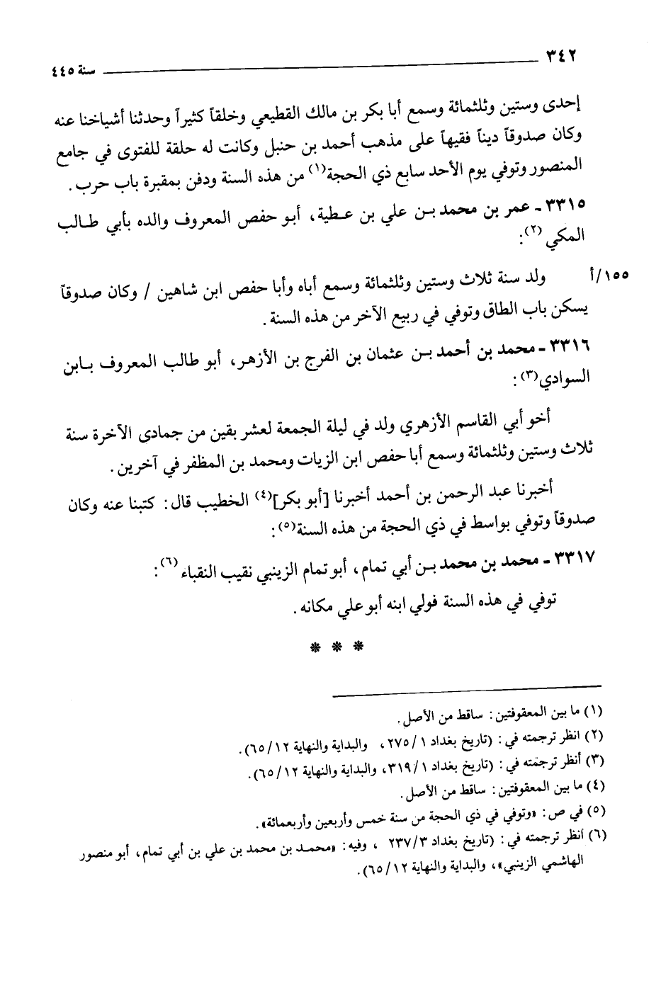 [6] انظر ترجمته في: تاريخ بغداد 3/ 237، وفيه: «محمد بن محمد بن علي بن أبي تمام، أبو منصور الهاشمي الزينبي» ، والبداية والنهاية 12/ 65) .