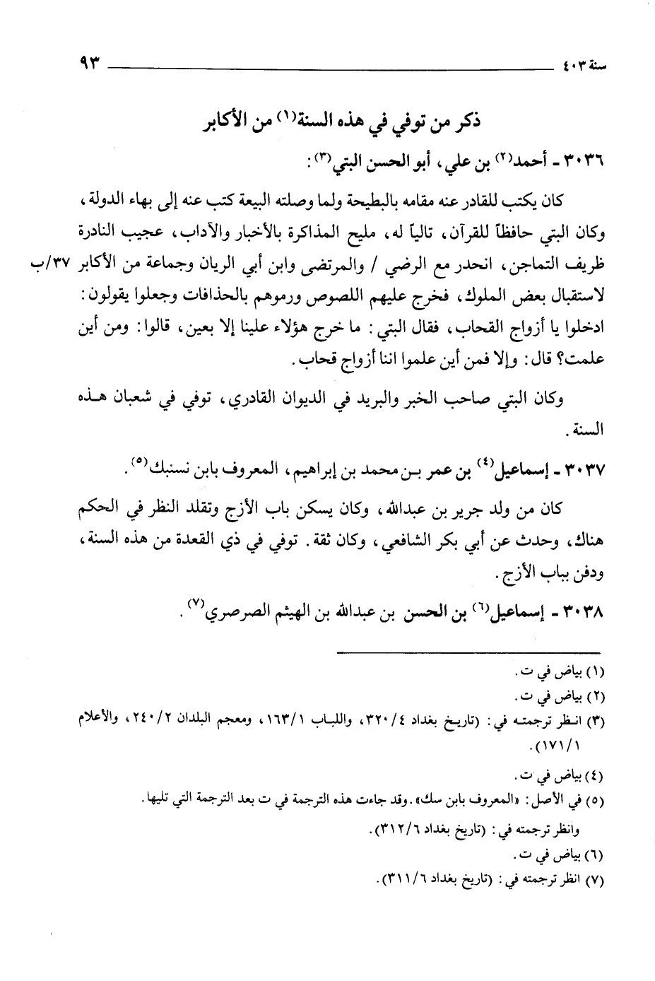 [3] انظر ترجمته في: (تاريخ بغداد 4/ 320، واللباب 1/ 163، ومعجم البلدان 2/ 240، والأعلام 1/ 171) .