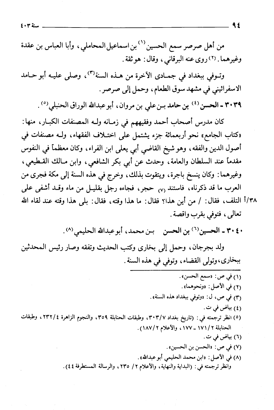 3040- الحسين [7] بن الحسن بن محمد، أبو عبد الله الحليمي