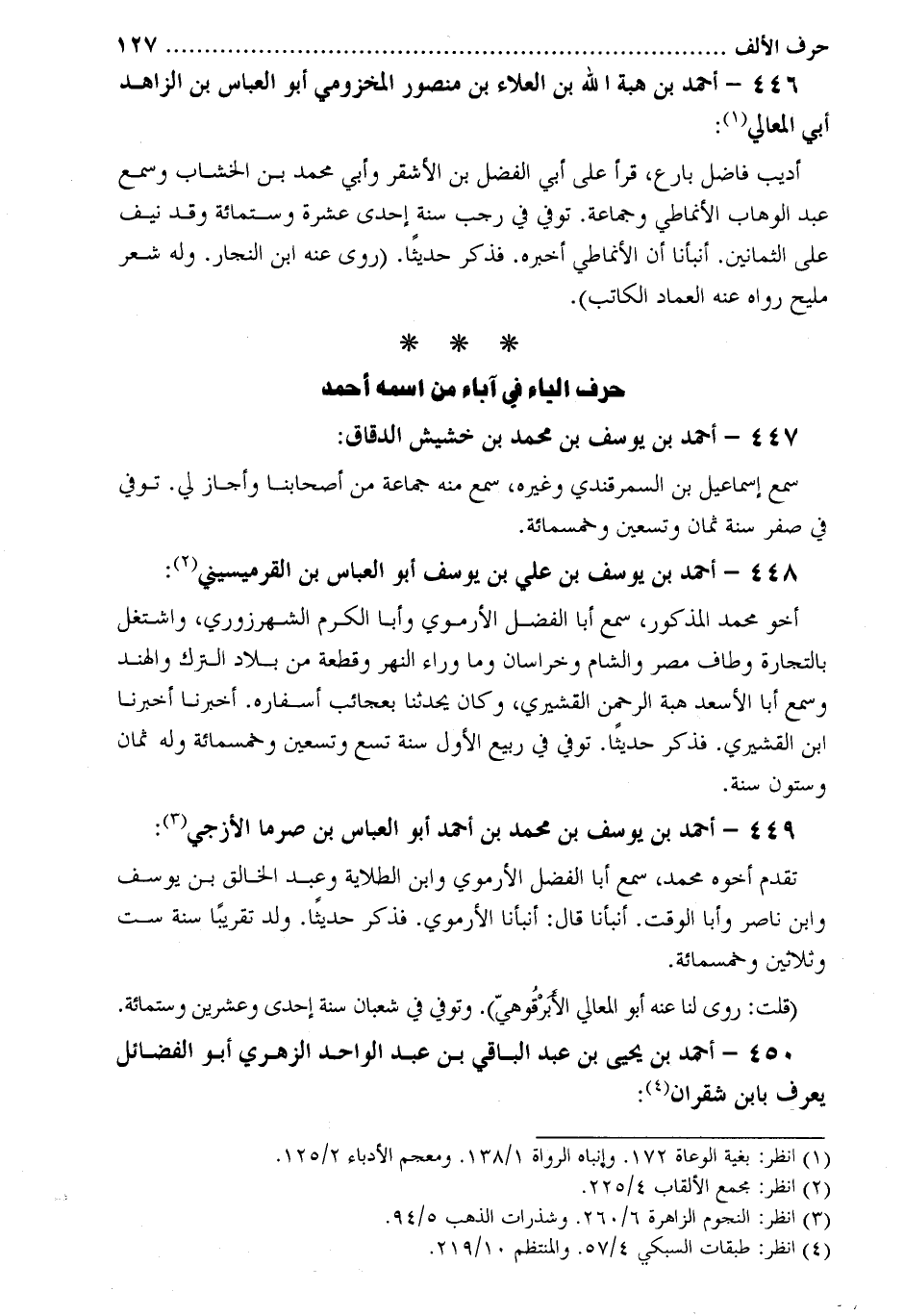 [1] انظر: شذرات الذهب 3/273. والنجوم الزاهرة 5/55. والمنتظم 8/158.