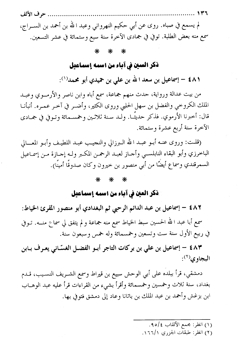 [2] انظر: مرآة الزمان 8/236. والمنتظم 10/202. ومجمع الألقاب 5/ت 340.
