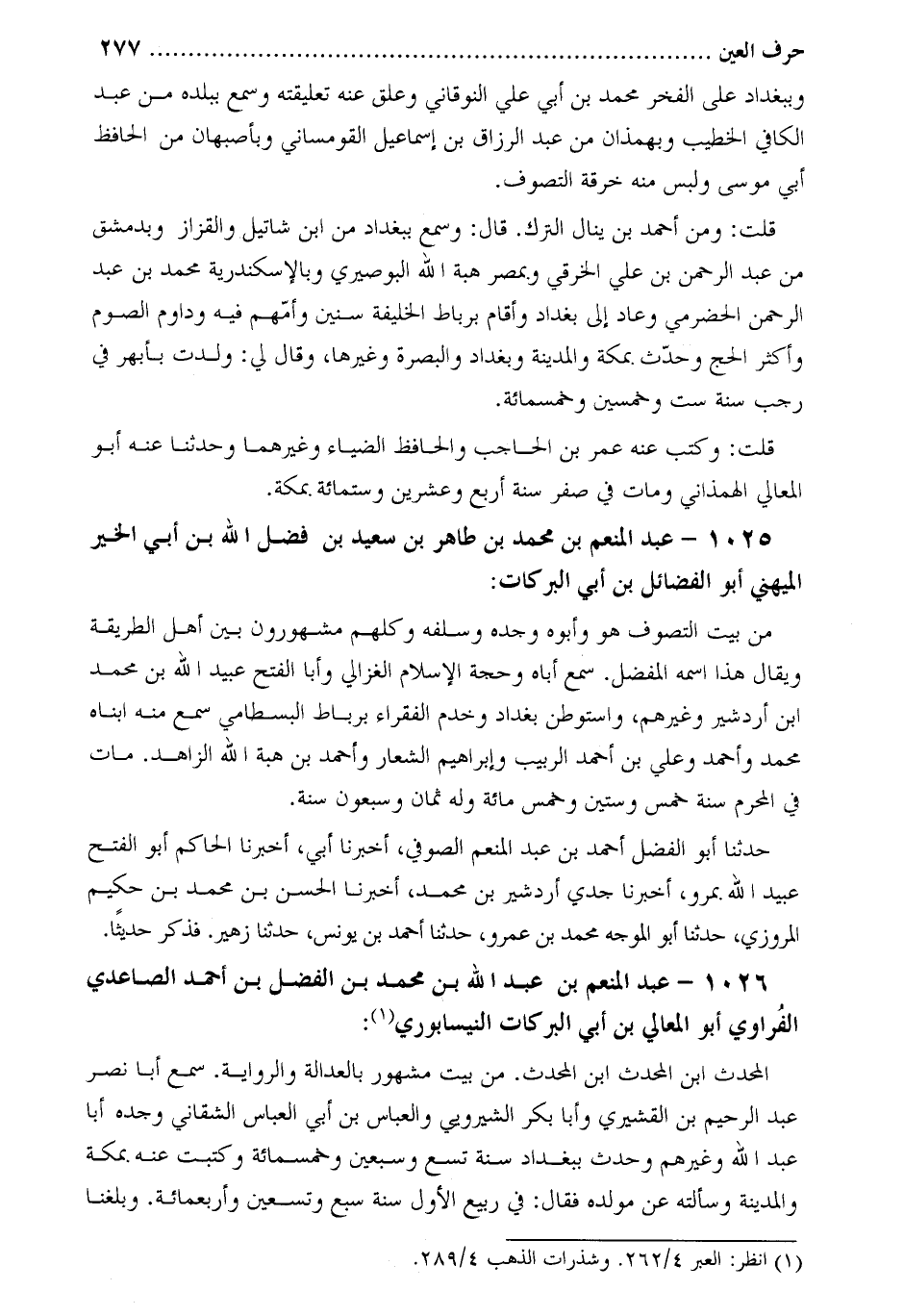 1026- عَبْد المنعم بْن عَبْد اللَّه بْن مُحَمَّد بْن الفضل بْن أَحْمَد الصاعدي الفُراوي أَبُو المعالي بْن أَبِي البركات النَّيْسَابُوريّ [1] :