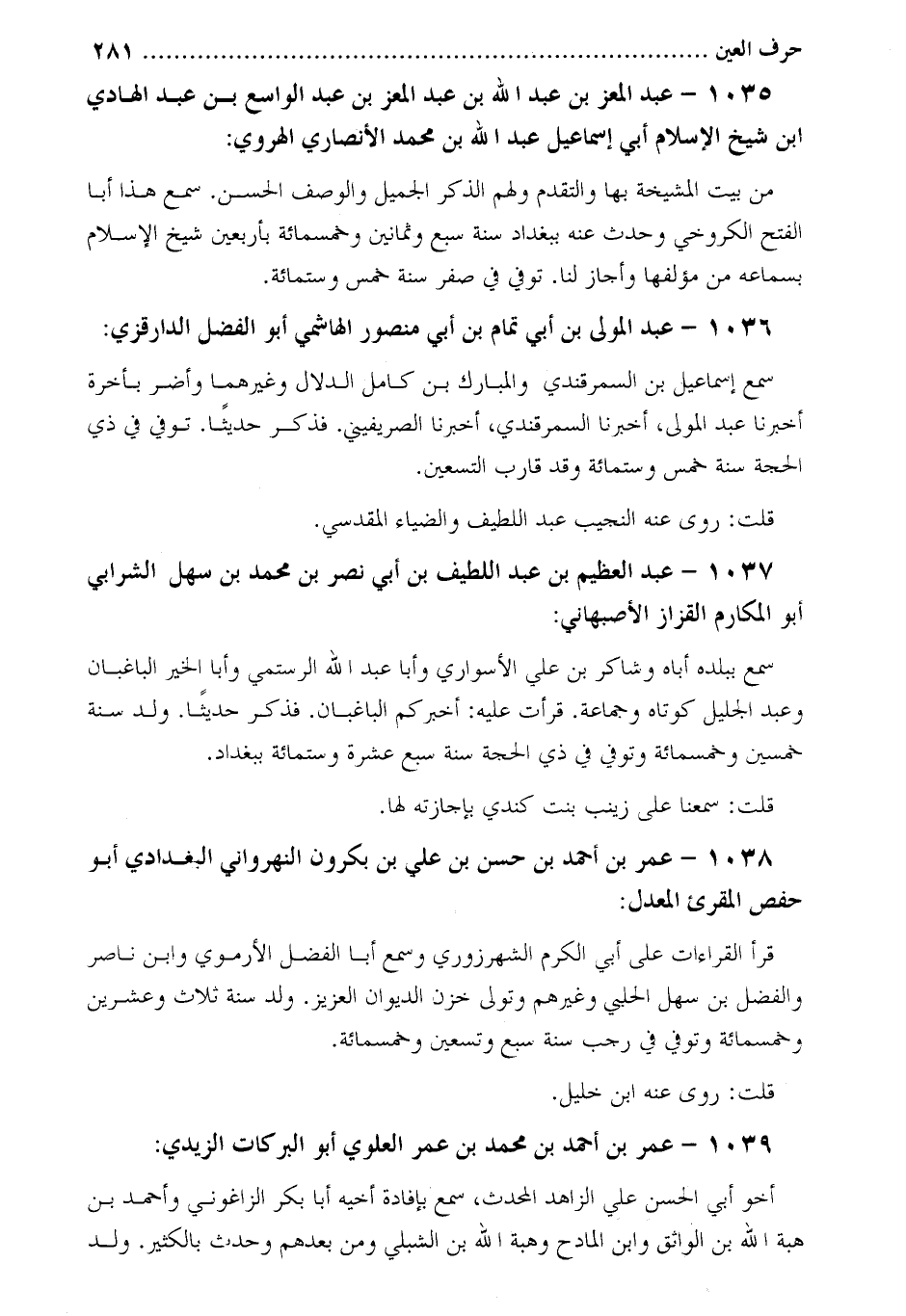 1035- عَبْد المعز بْن عَبْد اللَّه بْن عَبْد المعز بْن عَبْد الواسع بْن عَبْد الهادي ابن شيخ الْإِسْلَام أَبِي إِسْمَاعِيل عَبْد اللَّه بْن مُحَمَّد الْأَنْصَارِيّ الهروي: