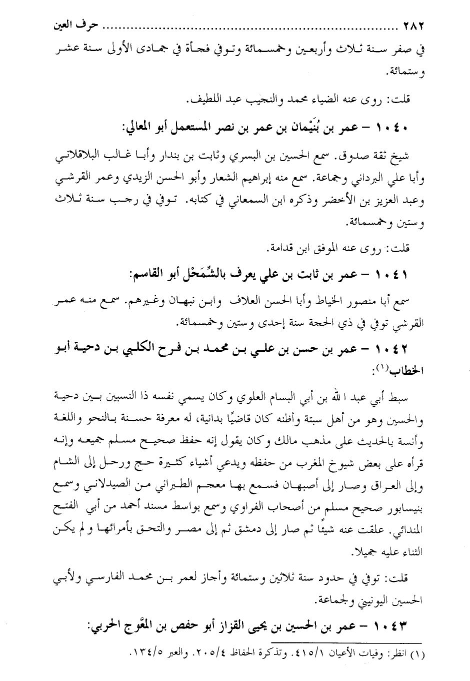 1043- عُمَر بْن الْحُسَيْن بْن يَحيى القزاز أَبُو حفص بن المعّوج الحربي: