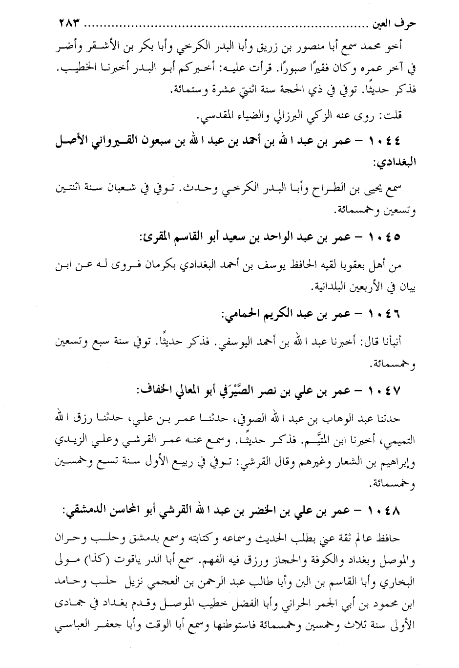 1044- عُمَر بْن عَبْد اللَّهِ بْن أَحْمَد بْن عَبْد اللَّهِ بْن سبعون القيرواني الأصل البغدادي: