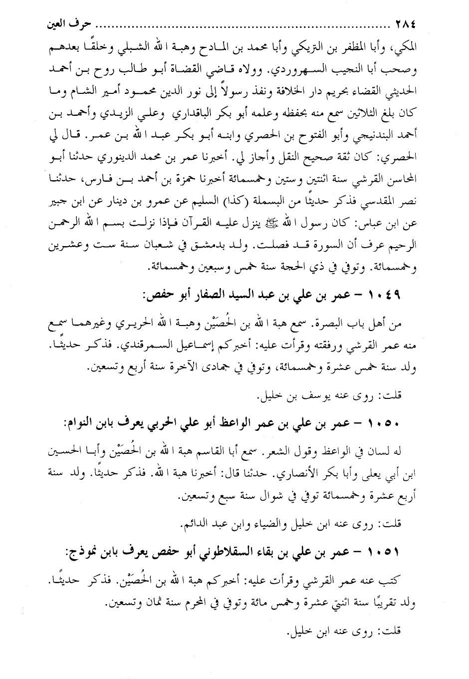 1051- عُمَر بْن عليّ بْن بقاء السقلاطوني أَبُو حَفْص يعرف بابن نموذج: