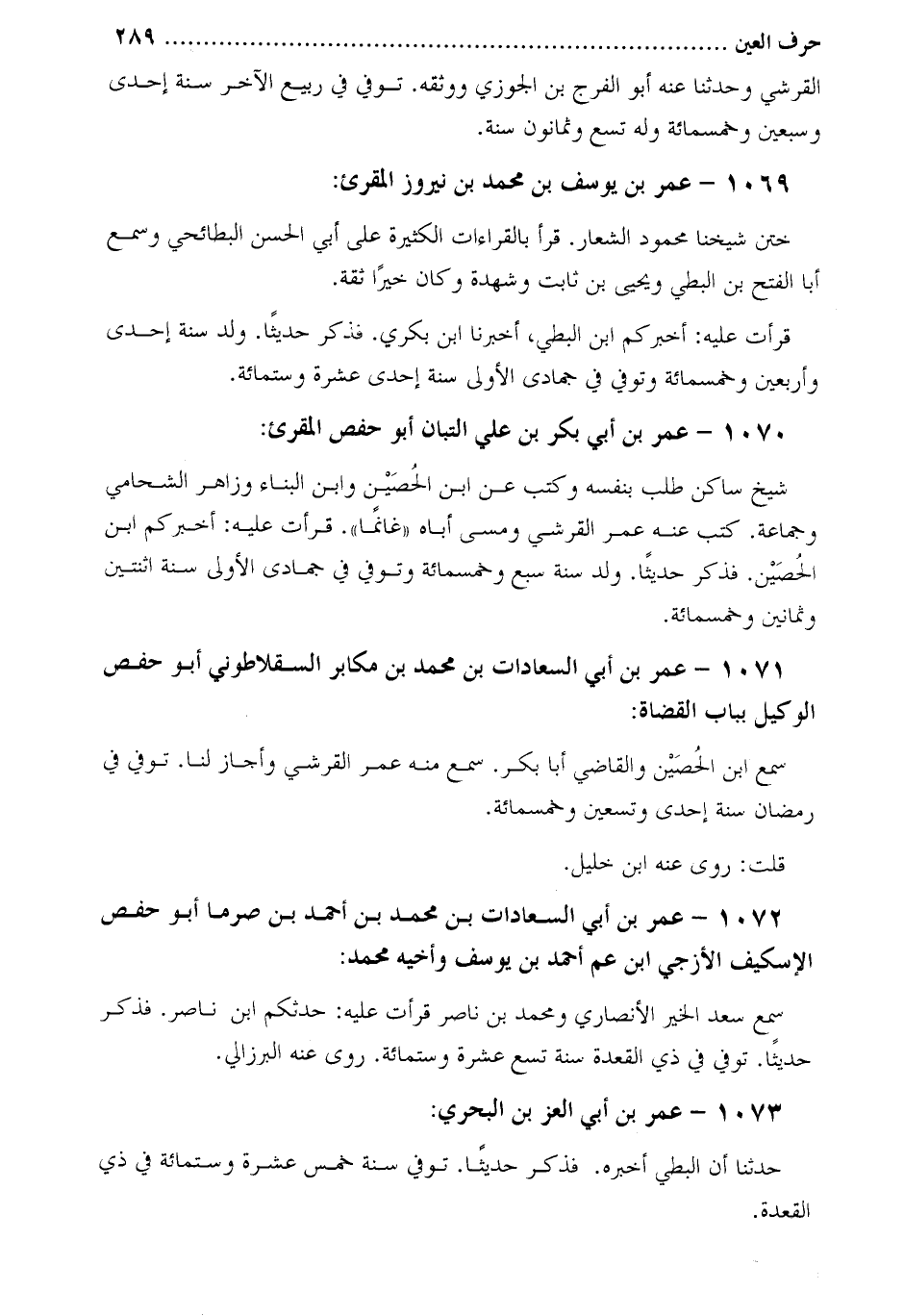 1072- عُمَر بْن أَبِي السعادات بْن مُحَمَّد بْن أَحْمَد بْن صرما أبو حفص الإسكيف الأزجي ابن عم أَحْمَد بْن يُوْسٌف وأخيه مُحَمَّد: