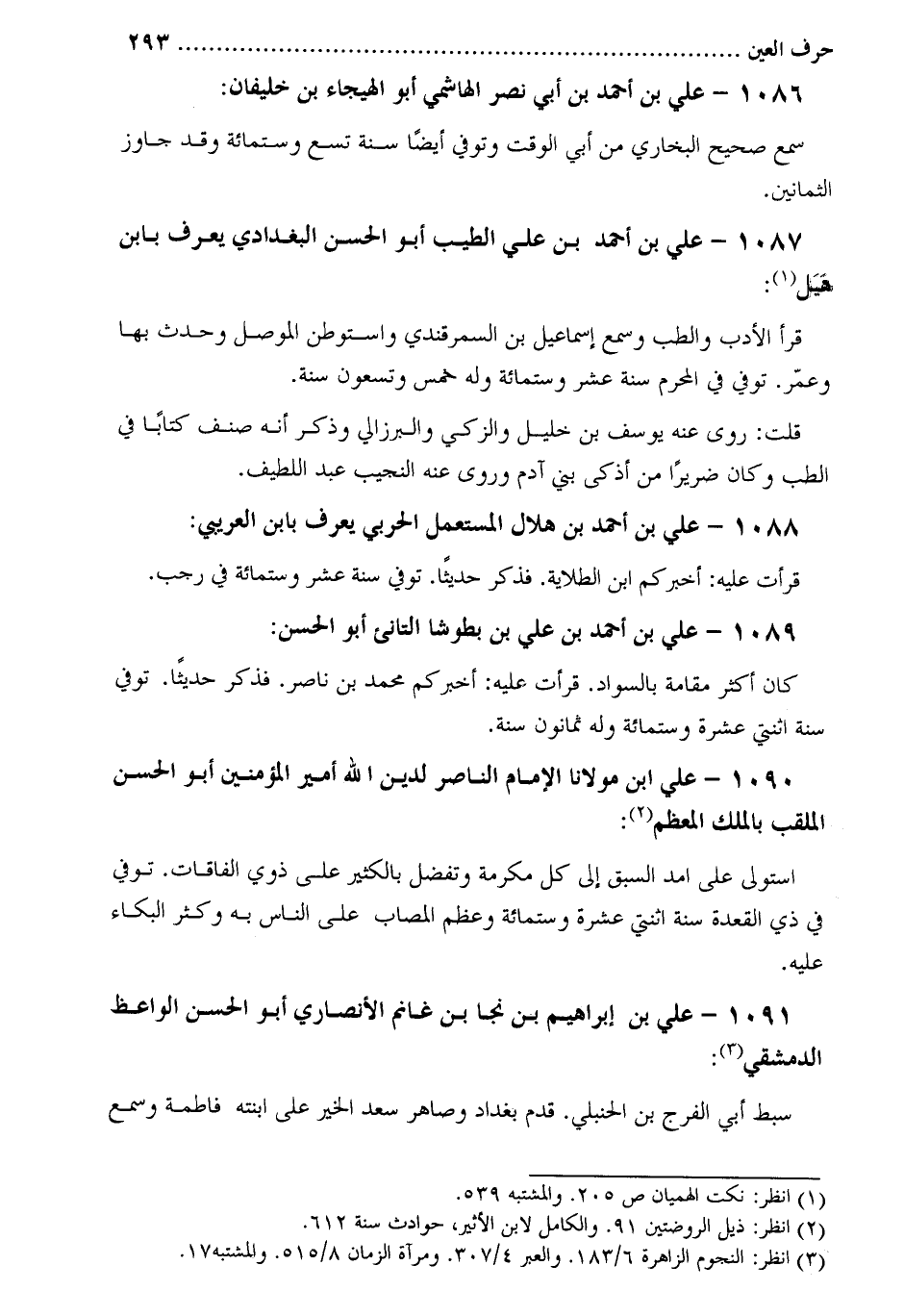 1087- عليّ بْن أَحْمَد بْن عليّ الطيب أَبُو الْحَسَن البغدادي يعرف بابن هبل [1] :