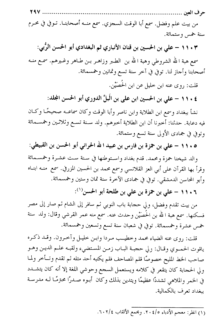 1106- عليّ بْن حمزة بْن عليّ بْن طلحة أَبُو الْحَسَن [1] :