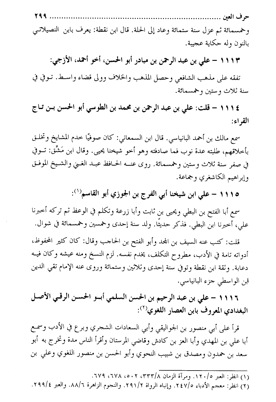 1116- عليّ بْن عَبْد الرَّحِيم بْن الْحَسَن السلمي أَبُو الْحَسَن الرقي الأصل البغدادي المعروف بابن العصار اللغوي [2] :