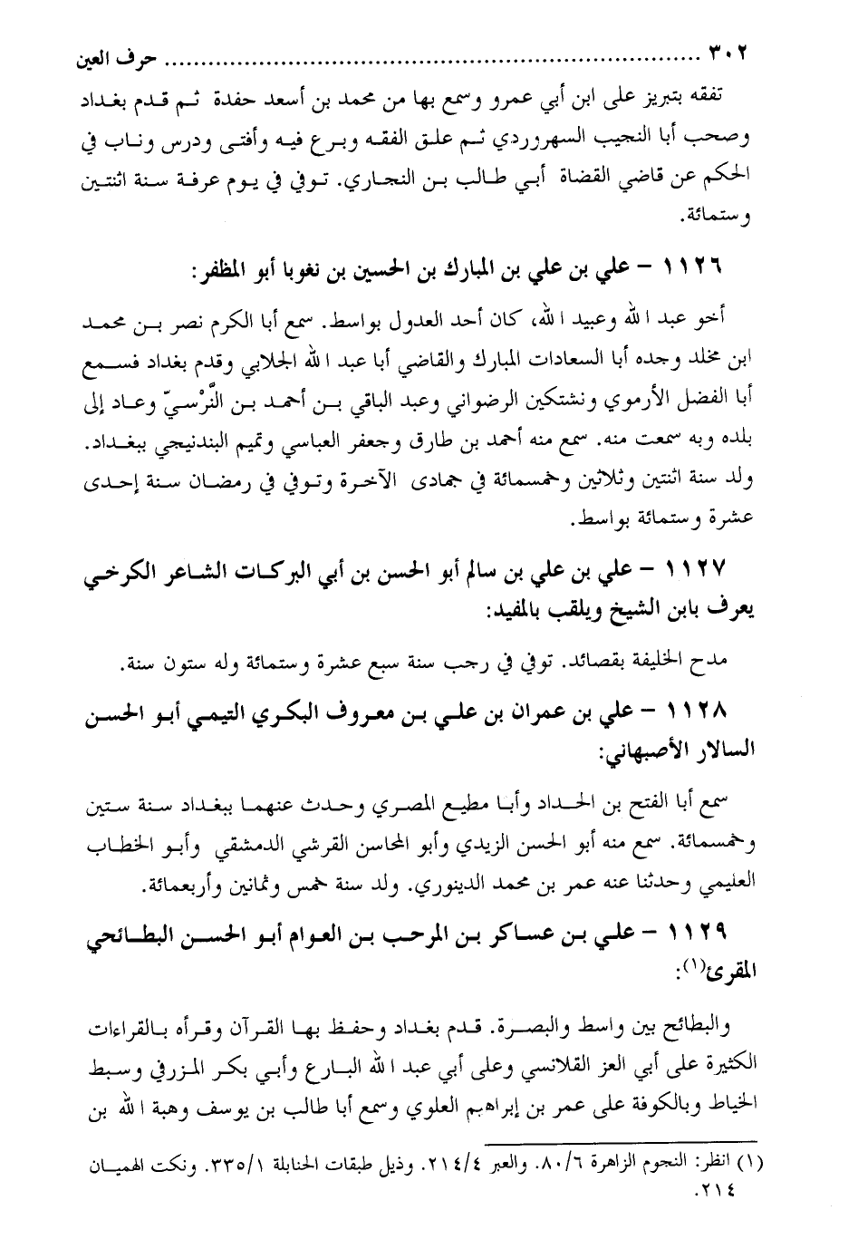 1129- عليّ بْن عساكر بْن المرحب بْن العوام أَبُو الْحَسَن البطائحي المقرئ [1] :