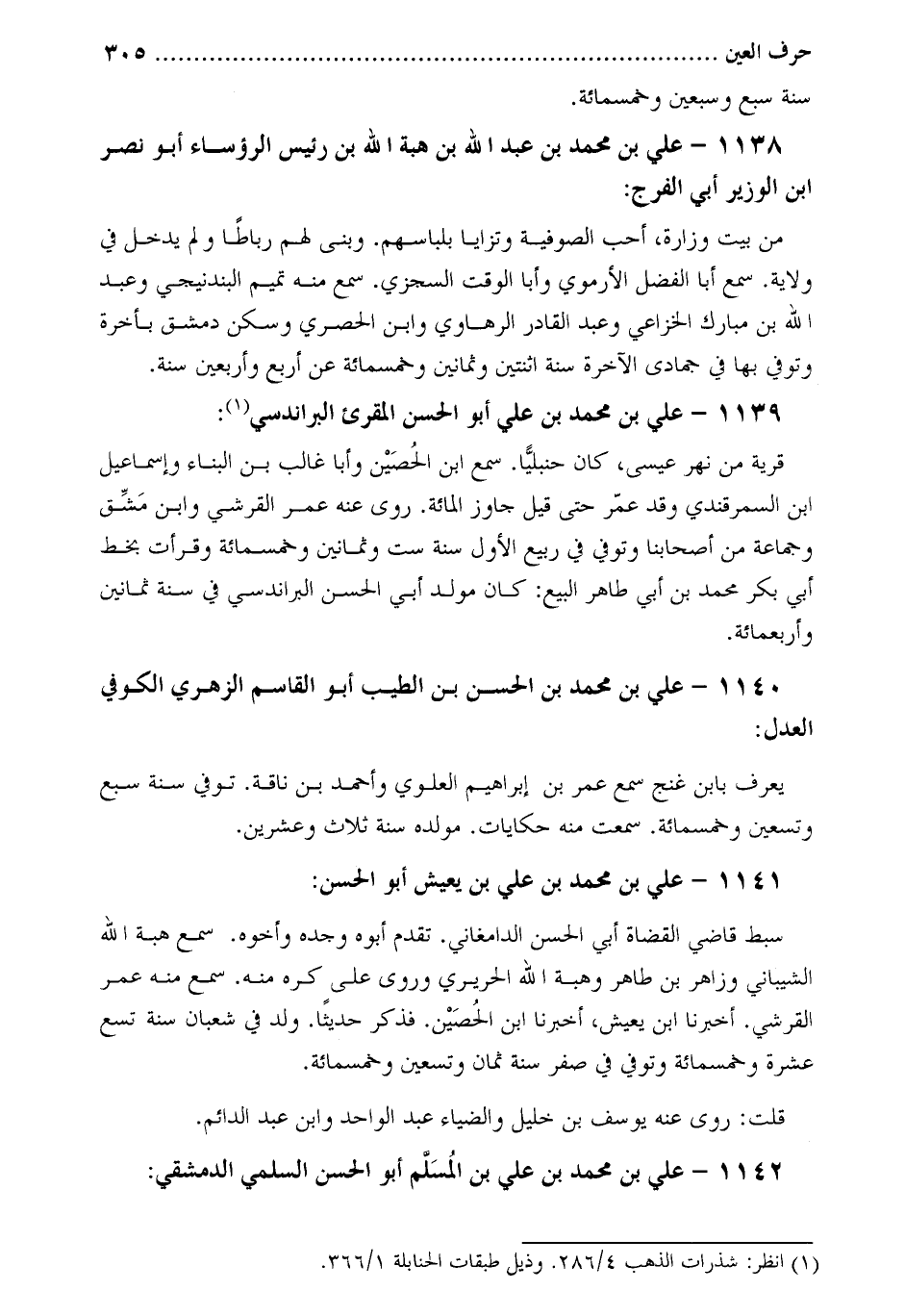 1138- عليّ بْن مُحَمَّد بْن عَبْد اللَّه بْن هبة اللَّه بْن رئيس الرؤساء أَبُو نصر ابن الوزير أَبِي الفرج: