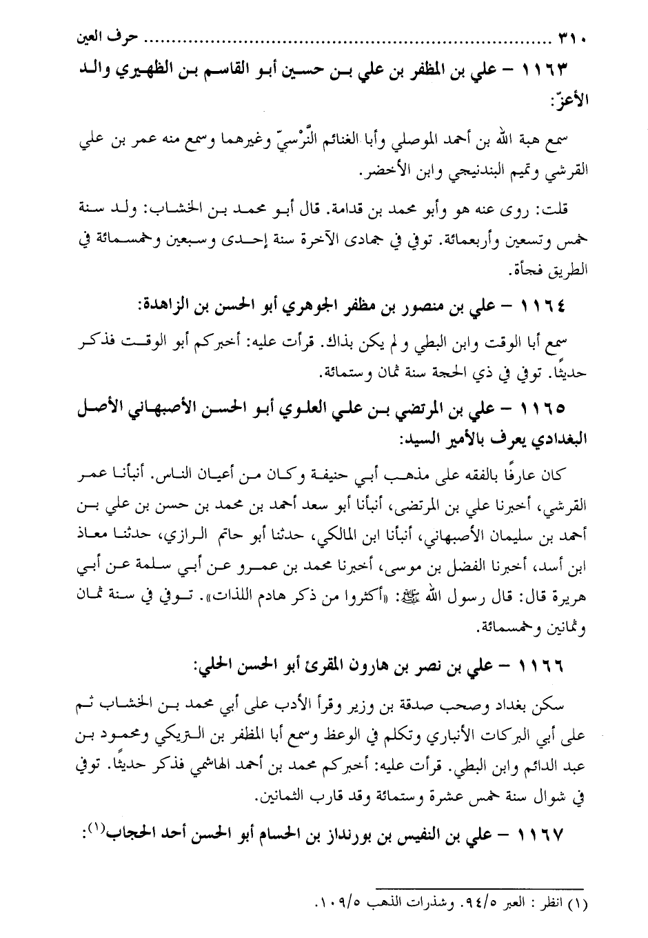 1165- عليّ بْن المرتضي بْن عليّ العلوي أَبُو الْحَسَن الأصبهاني الأصل البغدادي يعرف بالأمير السيد: