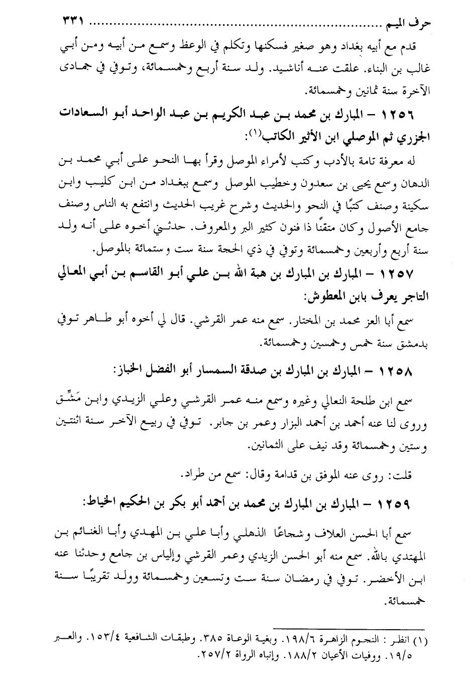 1256- المبارك بْن مُحَمَّد بْن عَبْد الكريم بْن عَبْد الواحد أَبُو السعادات الجزري ثُمَّ الموصلي ابْنُ الأثير الكاتب [1] :