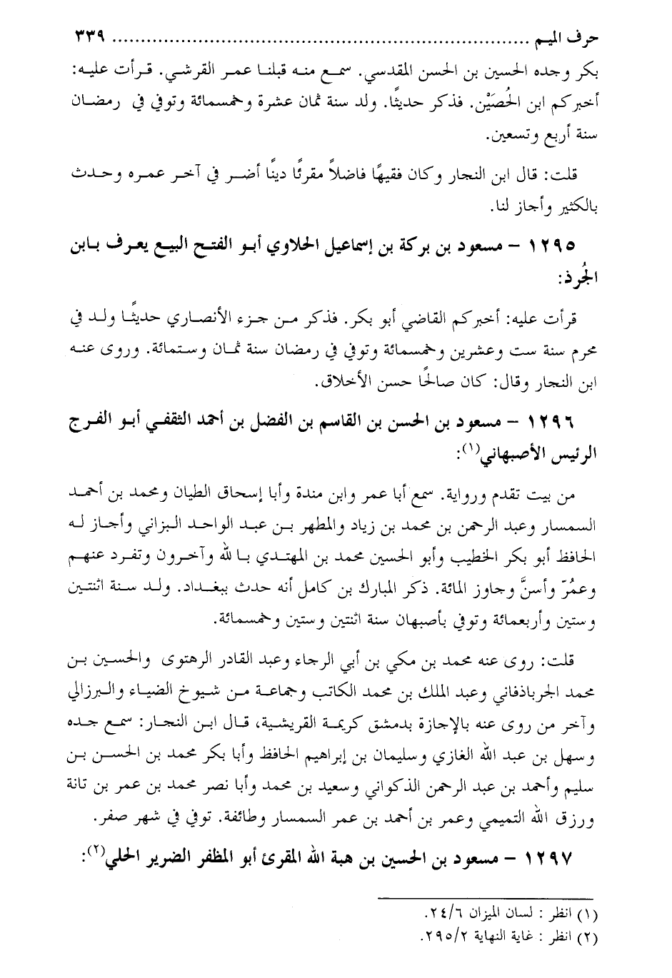 1297- مَسْعُود بْن الْحُسَيْن بْن هبة اللَّه المقرئ أَبُو المظفر الضرير الحلي [2] :