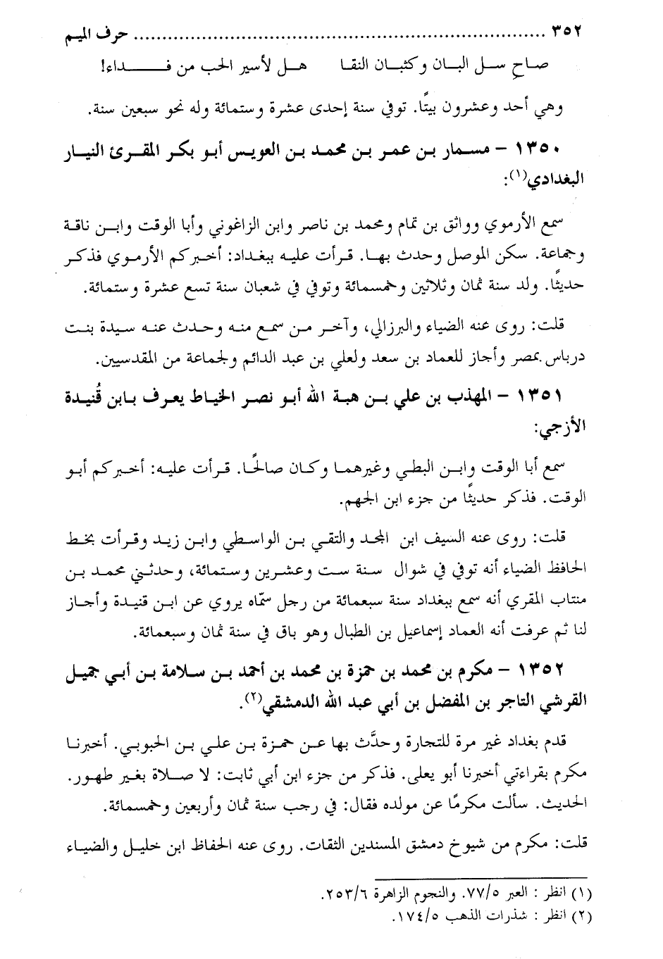 1352- مكرم بْن مُحَمَّد بْن حمزة بْن مُحَمَّد بْن أَحْمَد بْن سلامة بْن أَبِي جميل الْقُرَشِيّ التاجر بْن المفضل بْن أَبِي عَبْد اللَّه الدمشقي [2] :