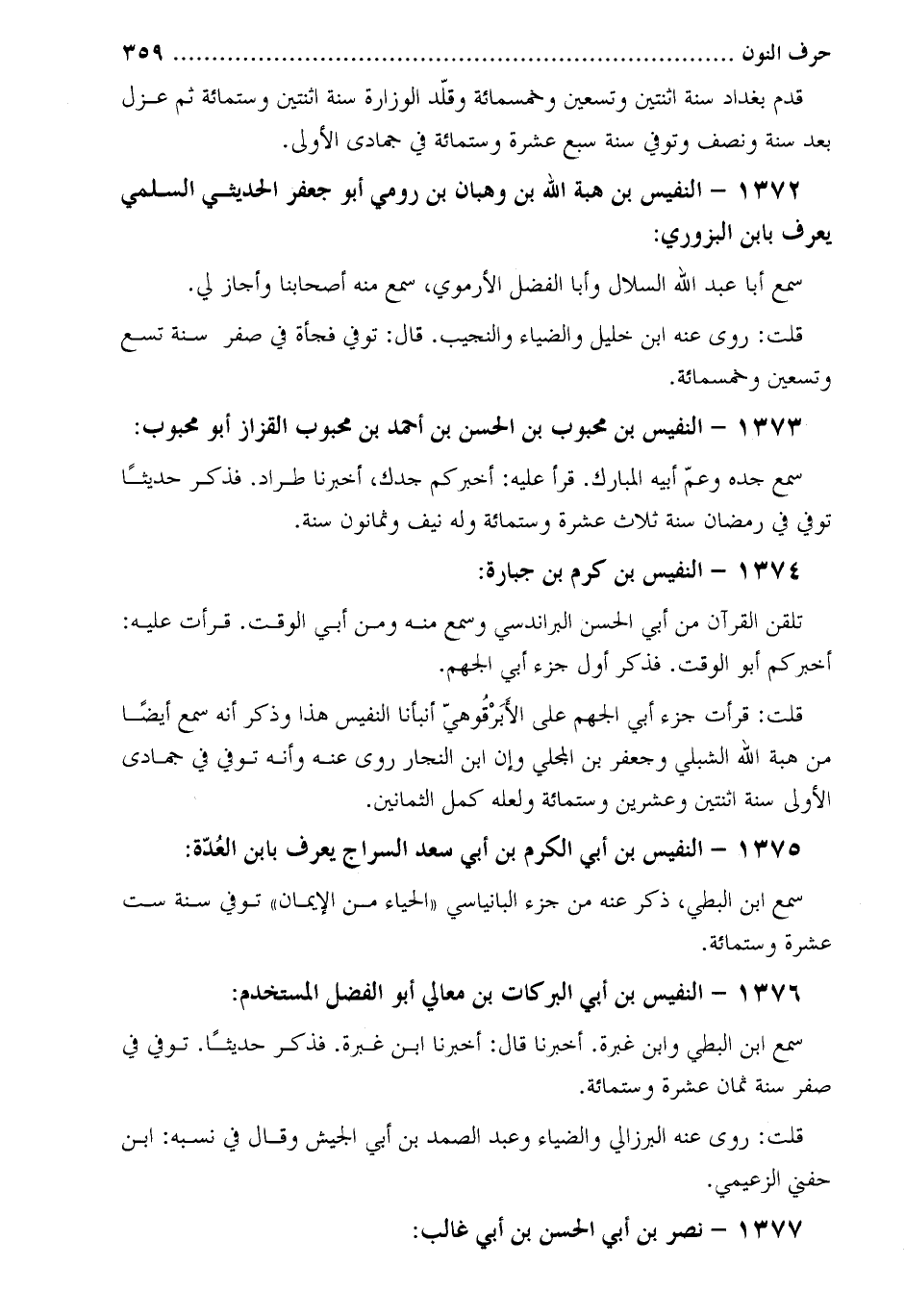 1372- النفيس بْن هبة اللَّه بن وهبان بْن رومي أَبُو جَعْفَر الحديثي السُلمي يعرف بابن البزوري: