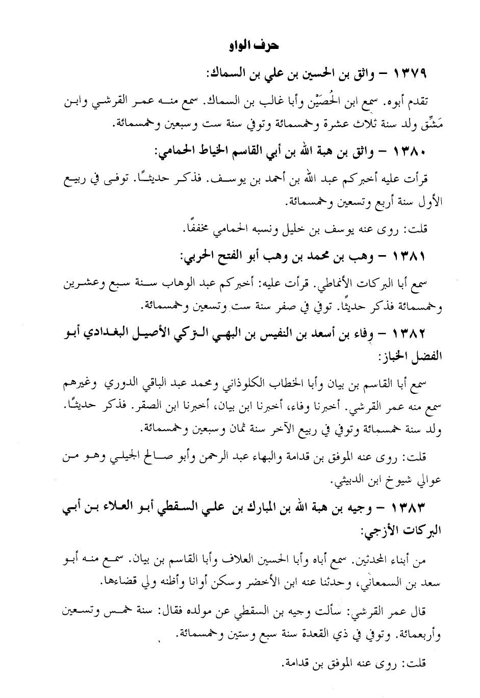 1379- واثق بْن الْحُسَيْن بْن عليّ بْن السماك: