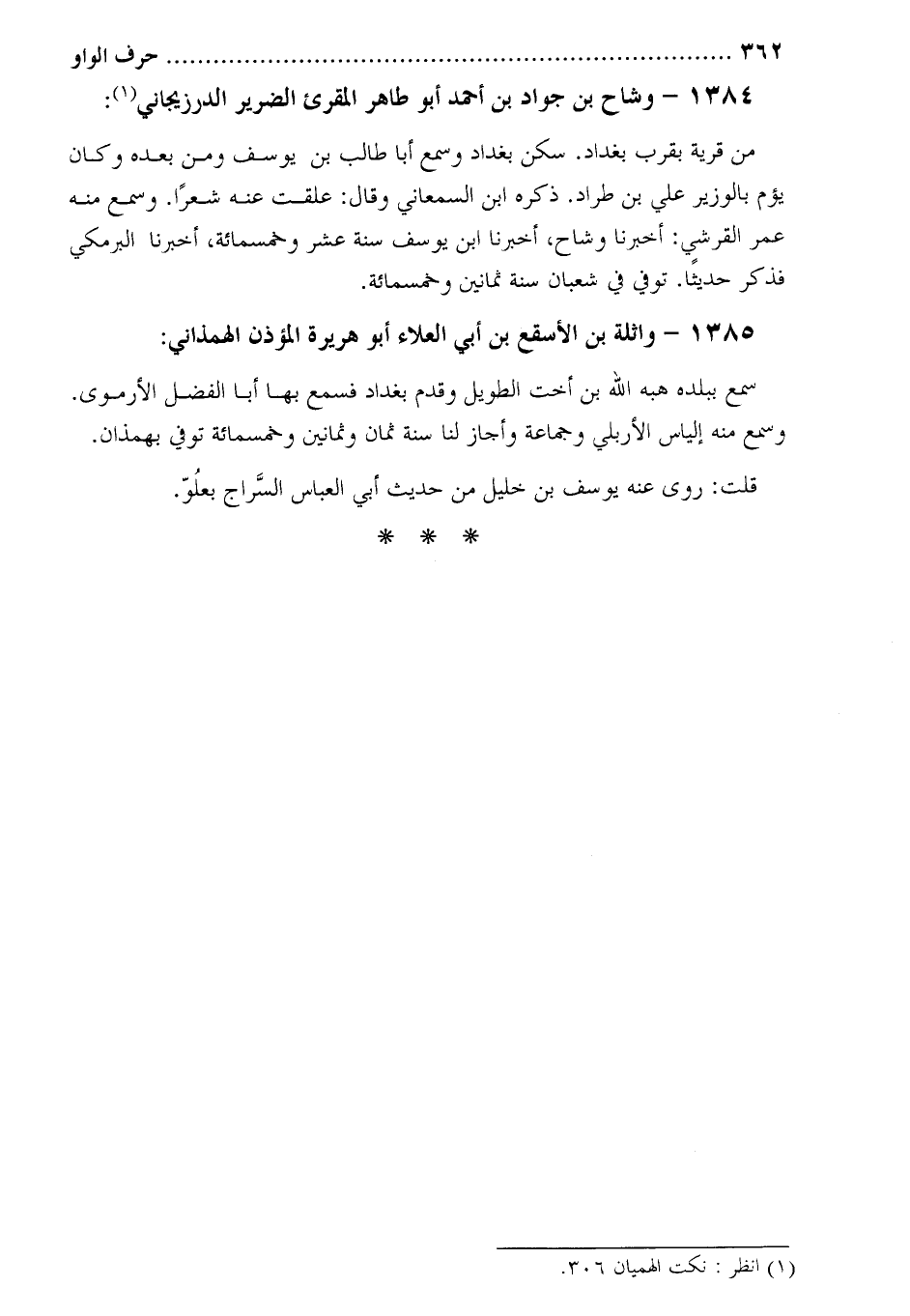 1384- وشاح بْن جواد بْن أَحْمَد أَبُو طاهر المقرئ الضرير الدرزيجاني [1] :