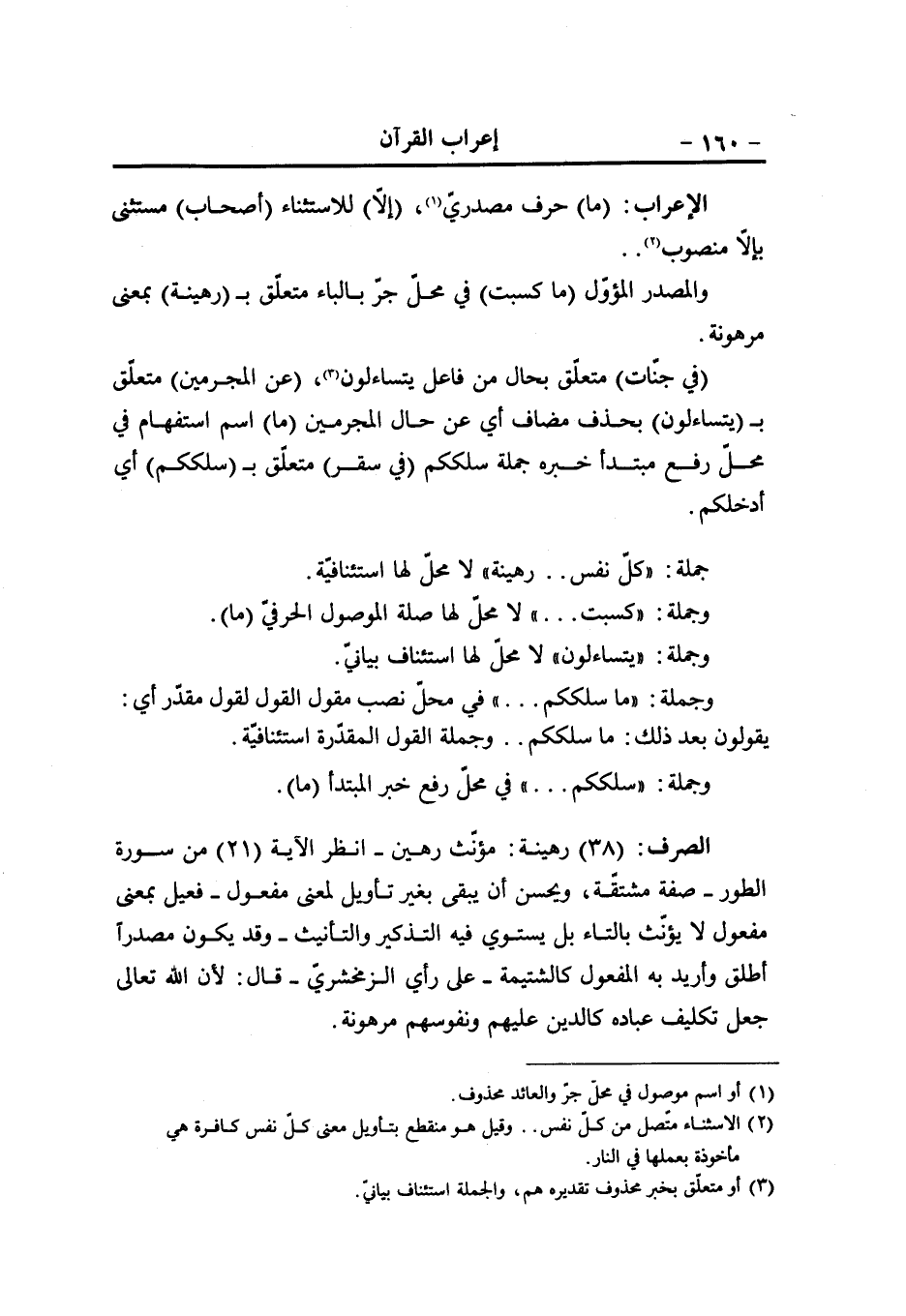 (ينظر) مضارع مجزوم، والفاعل هو (أيّها) اسم موصول مبنيّ على الضمّ في محلّ نصب مفعول به «1» ، (ها) ضمير في محلّ جرّ مضاف إليه (أزكى) خبر لمبتدأ محذوف تقديره هو، مرفوع وعلامة الرفع الضمّة المقدّرة على الألف (طعاما) تمييز منصوب (الفاء) عاطفة (ليأتكم) مثل لينظر، وعلامة الجزم حذف حرف العلّة.. و (كم) ضمير مفعول به (برزق) جارّ ومجرور متعلّق ب (يأتكم) «2» ، (منه) مثل منهم متعلّق بنعت ل (رزق) (الواو) عاطفة (ليتلطّف) مثل لينظر (الواو) عاطفة (لا) ناهية جازمة (يشعرنّ) مضارع مبنيّ على الفتح في محلّ جزم.. و (النون) نون التوكيد، والفاعل هو (الباء) حرف جرّ و (كم) ضمير في محلّ جرّ متعلّق ب (يشعرنّ) ، (أحدا) مفعول به منصوب.