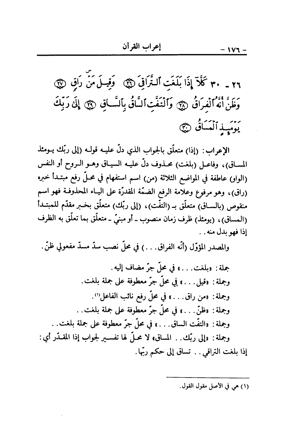 ومجرور متعلّق بنعت ل (ماء) ، (يشوى) مضارع مرفوع وعلامة الرفع الضمّة المقدّرة على الياء، والفاعل هو (الوجوه) مفعول به منصوب (بئس) فعل ماض جامد لإنشاء الذمّ (الشراب) فاعل مرفوع، والمخصوص بالذمّ محذوف تقديره هو أي الماء الذي كالمهل (الواو) عاطفة (ساءت) فعل ماض لإنشاء الذمّ..