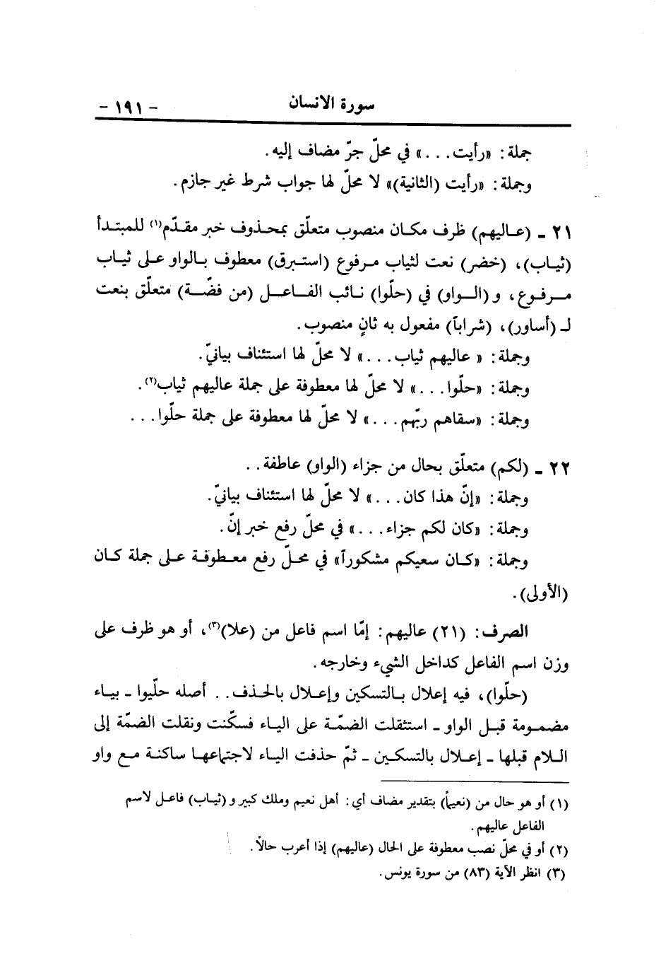 41- (أو) حرف عطف (يصبح) مثل تصبح ومعطوف عليه (ماؤها) اسم يصبح مرفوع و (ها) مضاف إليه (غورا) خبر يصبح منصوب (الفاء) عاطفة (لن) حرف نفي ونصب (تستطيع) مضارع منصوب، والفاعل أنت (اللام) حرف جرّ و (الهاء) ضمير في محلّ جرّ متعلّق ب (طلبا) «1» .
