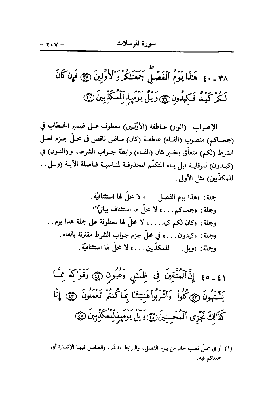 (الواو) استئنافيّة (يوم) مفعول به لفعل محذوف تقديره اذكر (يقول) مضارع مرفوع، والفاعل هو أي الله (نادوا) فعل أمر مبنيّ على حذف النون.. و (الواو) فاعل (شركائي) مفعول به منصوب، وعلامة النصب الفتحة المقدّرة على ما قبل الياء.. و (الياء) مضاف إليه (الذين) اسم موصول في محلّ نصب نعت لشركاء (زعمتم) فعل ماض وفاعله، وقد حذف المفعولان أي زعمتموهم شركاء (الفاء) عاطفة (دعوهم) فعل ماض مبنيّ على الضمّ المقدّر على الألف المحذوفة لالتقاء الساكنين.. و (الواو) فاعل، و (هم) ضمير مفعول به (الفاء) عاطفة (لم) حرف نفي وجزم (يستجيبوا) مضارع مجزوم وعلامة الجزم حذف النون.. و (الواو) فاعل (اللام) حرف جرّ و (هم) ضمير في محلّ جرّ متعلّق ب (يستجيبوا) ، (الواو) حاليّة (جعلنا) فعل ماض وفاعله (بينهم) ظرف منصوب متعلّق بمفعول به ثان.. و (هم) مضاف إليه (موبقا) مفعول به أوّل منصوب.