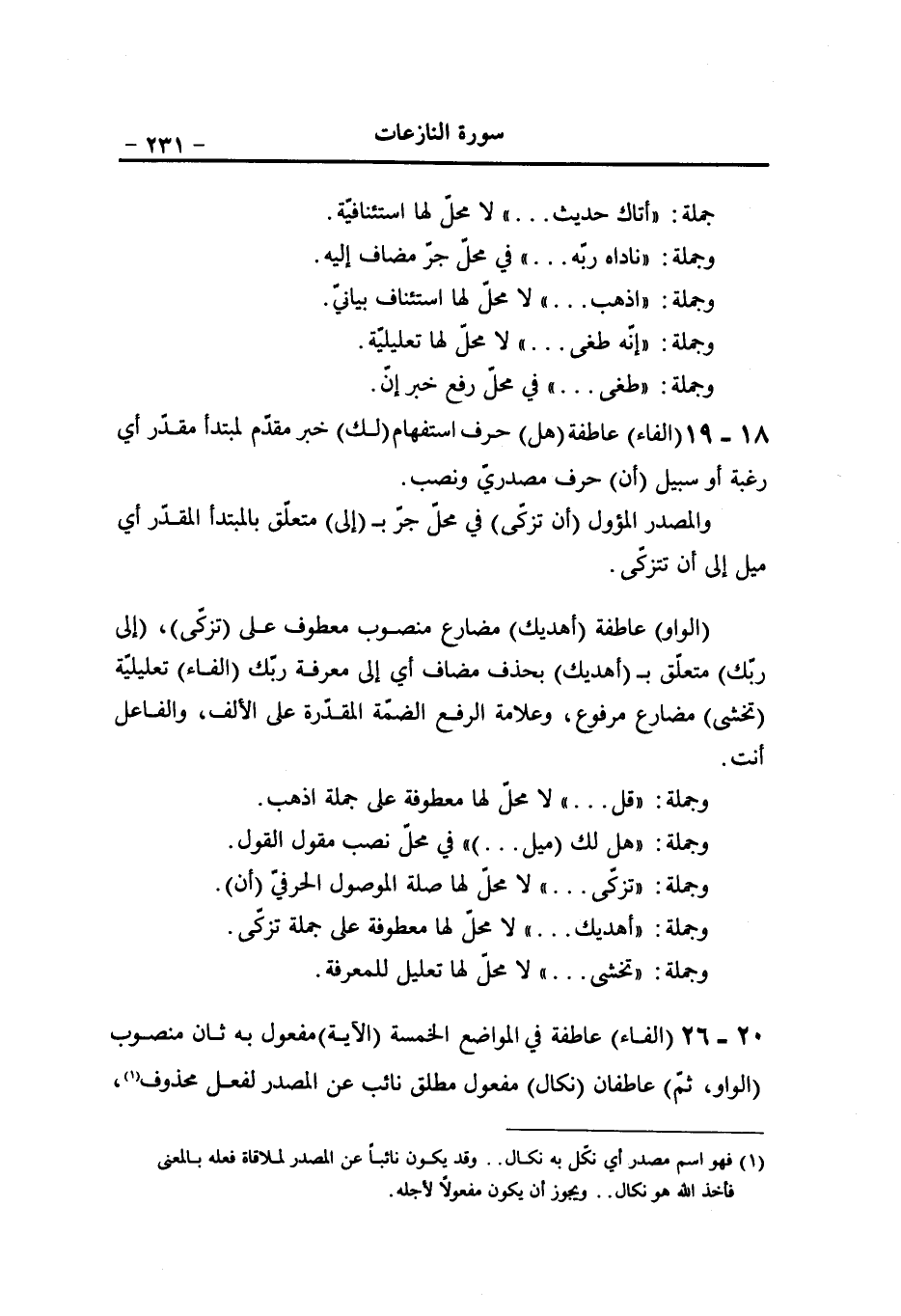 ، (نفس) مضاف إليه مجرور (لقد جئت شيئا نكرا) مثل لقد جئت شيئا إمرا «4» .