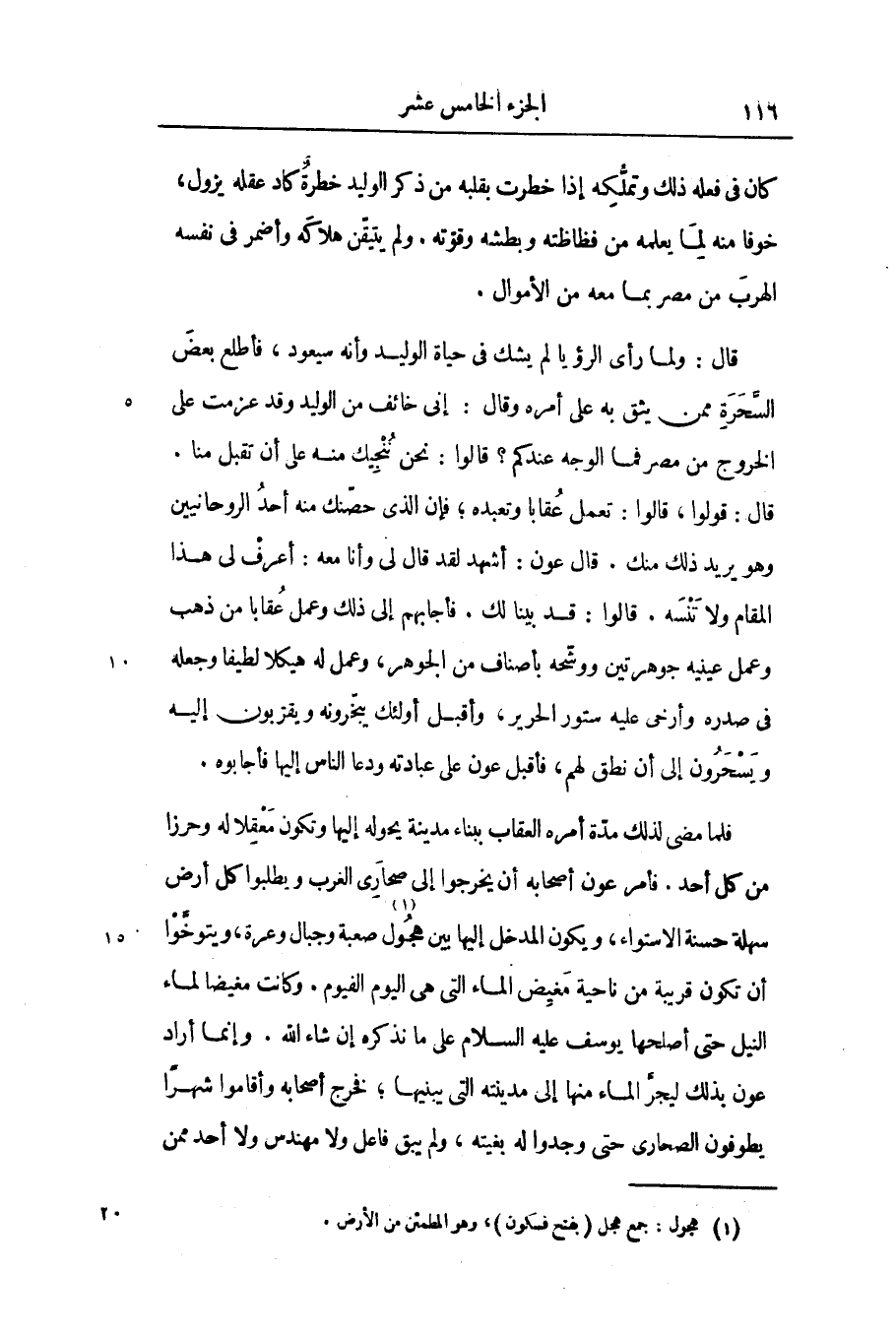 قال: ولما رأى الرؤيا لم يشك فى حياة الوليد وأنه سيعود، فأطلع بعض السّحرة ممن يثق به على أمره وقال: إنى خائف من الوليد وقد عزمت على الخروج من مصر فما الوجه عندكم؟ قالوا: نحن ننجيك منه على أن تقبل منا.
