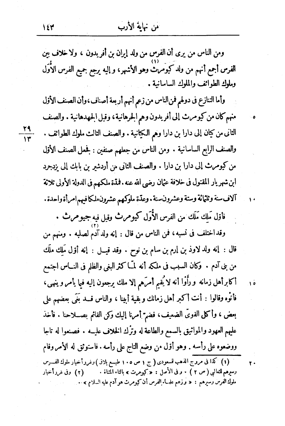 ومن الناس من يرى أن الفرس من ولد إيران بن أفريدون، ولا خلاف بين الفرس أجمع أنهم من ولد كيومرث «1» وهو الأشهر، وإليه يرجع جميع الفرس الأول وملوك الطوائف والملوك الساسانية.
