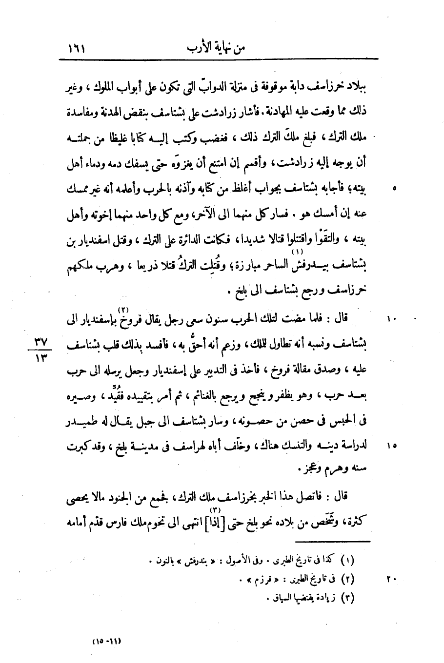 قال: فاتصل هذا الخبر بخرزاسف ملك الترك، فجمع من الجنود ما لا يحصى كثرة، وشخص من بلاده نحو بلخ حتى [إذا «3» ] انتهى الى تخوم ملك فارس قدّم أمامه