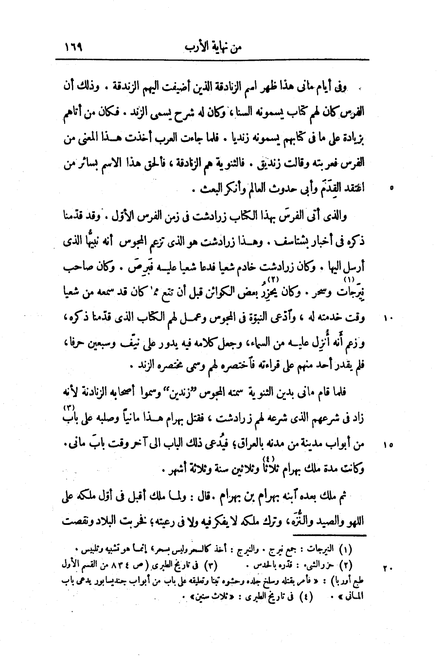 فلما قام مانى بدين الثنوية سمته المجوس «زندين» وسموا أصحابه الزنادنة لأنه زاد فى شرعهم الذى شرعه لهم زرادشت، فقتل بهرام هذا مانيا وصلبه على باب «3» من أبواب مدينة من مدنه بالعراق؛ فيدعى ذلك الباب الى آخر وقت باب مانى.