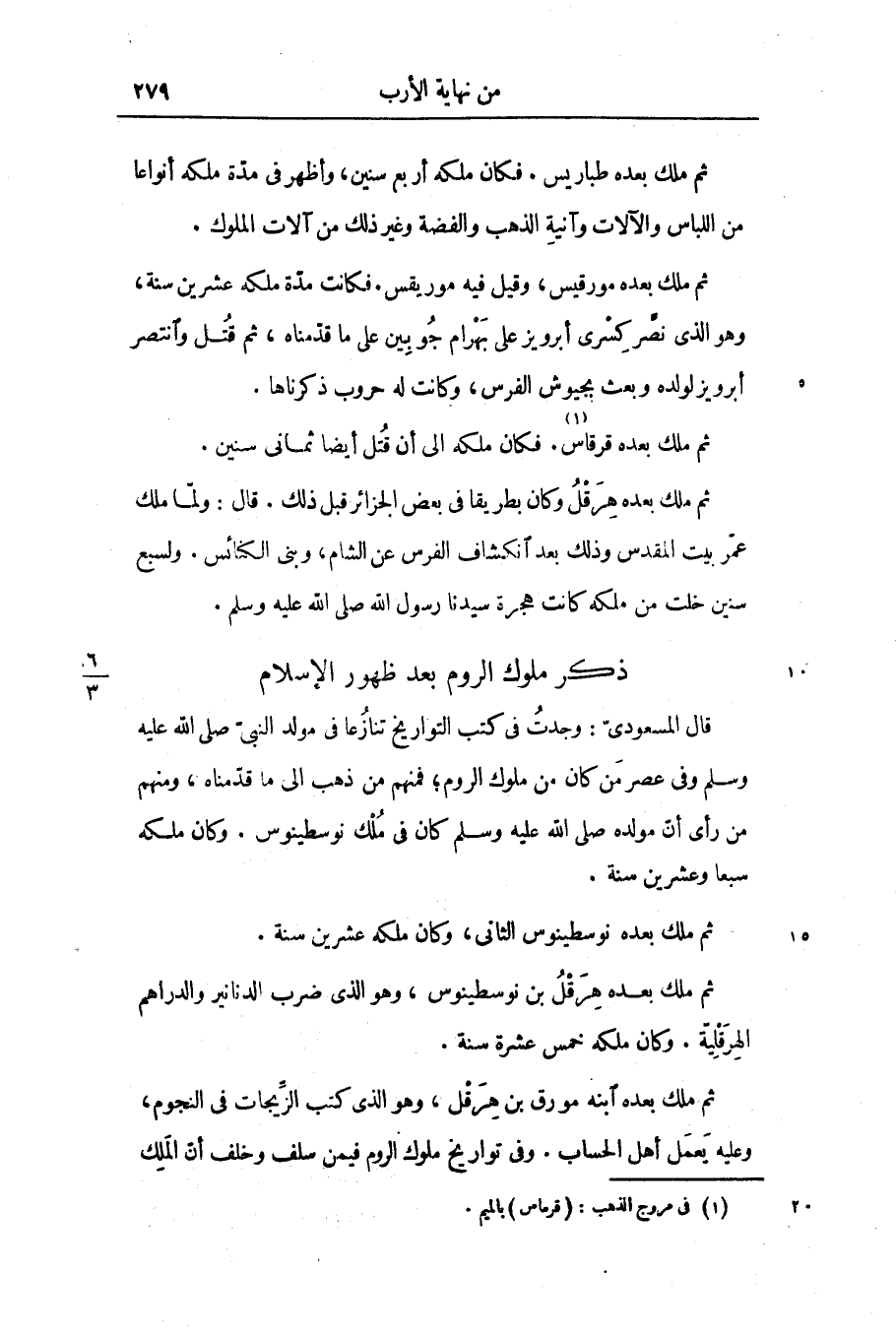 ثم ملك بعده هرقل وكان بطريقا فى بعض الجزائر قبل ذلك. قال: ولمّا ملك عمّر بيت المقدس وذلك بعد انكشاف الفرس عن الشام، وبنى الكنائس. ولسبع سنين خلت من ملكه كانت هجرة سيدنا رسول الله صلى الله عليه وسلم.