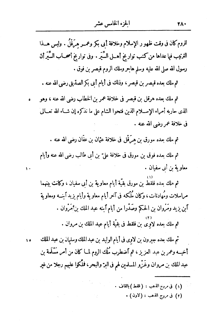 للروم كان فى وقت ظهور الإسلام وخلافة أبى بكر وعمر هرقل. وليس هذا الترتيب فيما عداها من كتب تواريخ أهل السّير. وفى تواريخ أصحاب السّير أنّ رسول الله صلى الله عليه وسلم هاجر وملك الروم قيصر بن فوق.
