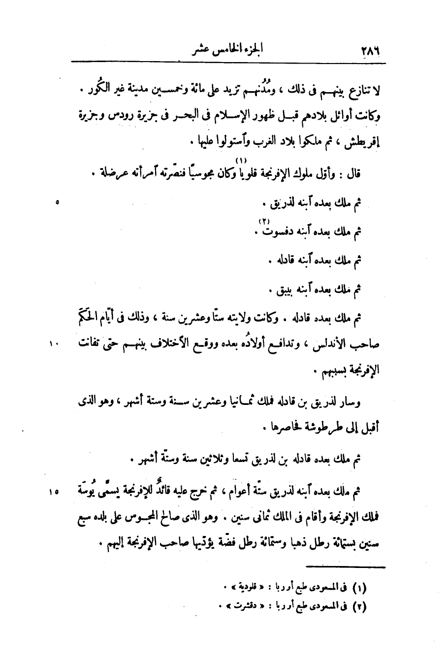 قال: وأوّل ملوك الإفرنجة قلويا «1» وكان مجوسيا فنصّرته امرأته عرضلة.