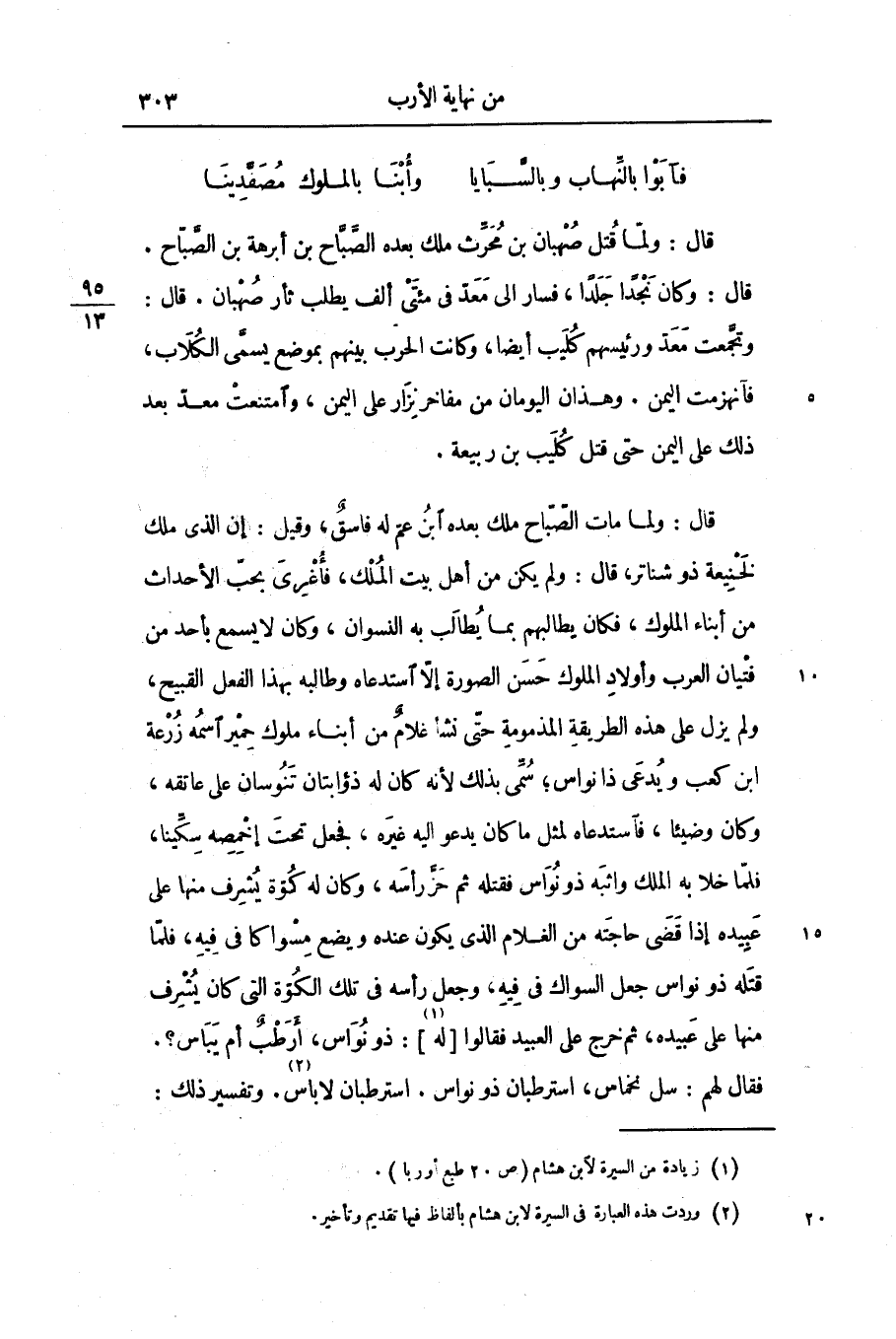 قال: ولما مات الصّبّاح ملك بعده ابن عمّ له فاسق، وقيل: إن الذى ملك لخنيعة ذو شناتر، قال: ولم يكن من أهل بيت الملك، فأغرى بحبّ الأحداث من أبناء الملوك، فكان يطالبهم بما يطالب به النسوان، وكان لا يسمع بأحد من فتيان العرب وأولاد الملوك حسن الصورة إلّا استدعاه وطالبه بهذا الفعل القبيح، ولم يزل على هذه الطريقة المذمومة حتّى نشأ غلام من أبناء ملوك حمير اسمه زرعة ابن كعب ويدعى ذانواس؛ سمّى بذلك لأنه كان له ذؤابتان تنوسان على عاتقه، وكان وضيئا، فاستدعاه لمثل ما كان يدعو اليه غيره، فجعل تحت إخمصه سكّينا، فلمّا خلا به الملك واثبه ذونواس فقتله ثم حزّ رأسه، وكان له كوّة يشرف منها على عبيده إذا قضى حاجته من الغلام الذى يكون عنده ويضع مسواكا فى فيه، فلمّا قتله ذو نواس جعل السواك فى فيه، وجعل رأسه فى تلك الكوّة التى كان يشرف منها على عبيده، ثم خرج على العبيد فقالوا [له «1» ] : ذو نواس، أرطب أم يباس؟.