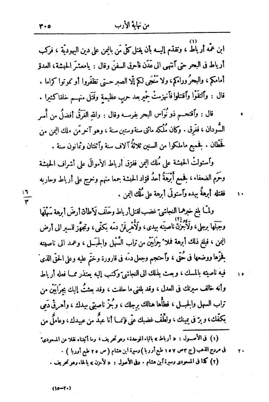 ابن عمّه أرياط «1» ، وتقدّم إليه بأن يقتل كلّ من باليمن على دين اليهوديّة، فركب أرياط فى البحر حتى انتهى الى عدن فأحرق السفن وقال: يا معشر الحبشة، العدوّ أمامكم، والبحر وراءكم، ولا منجى لكم إلّا الصبر حتى تظفروا أو تموتوا كراما.