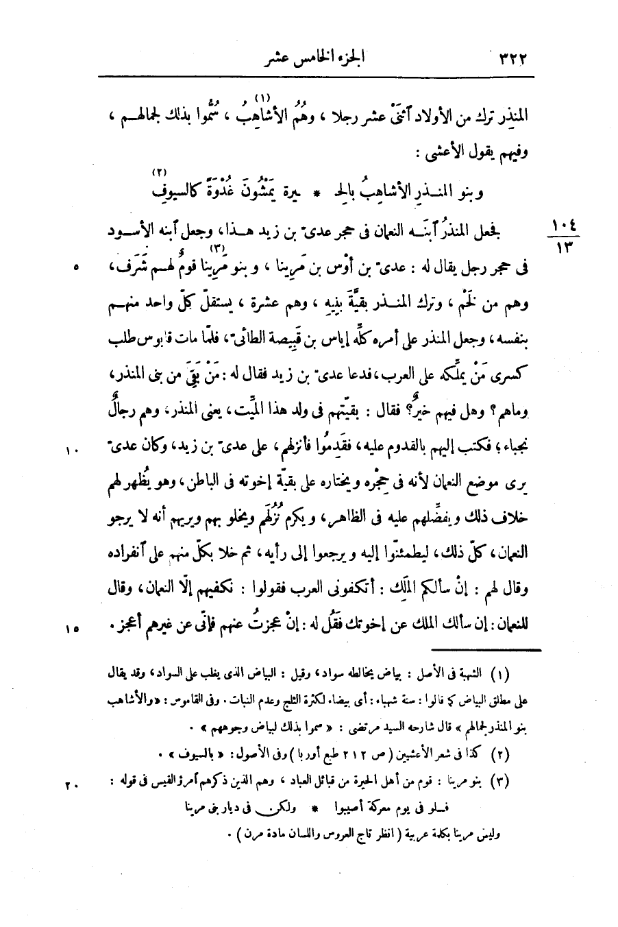 المنذر ترك من الأولاد اثنى عشر رجلا، وهم الأشاهب «1» ، سمّوا بذلك لجمالهم، وفيهم يقول الأعشى: